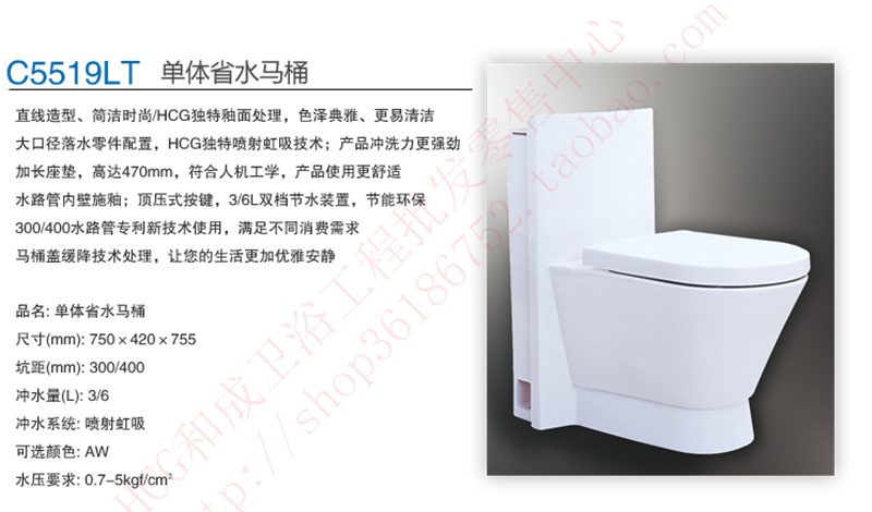 HCG and sanitary bathroom C5519 LT congestion toilet double press water super whirlpool water slow - down seat