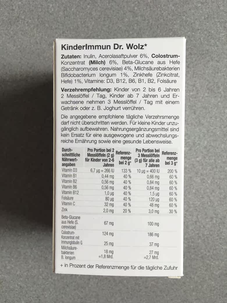 German original dress Dr Wolz baby cow's colostrum powder immunity lactic acid bacteria 2 years old
