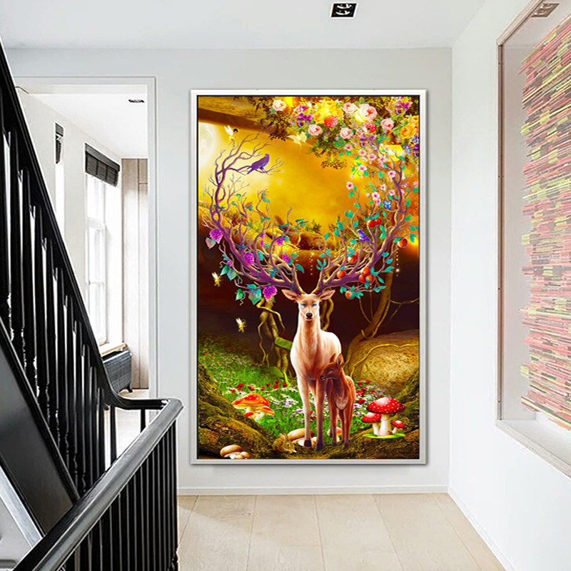 Cross stitch 2021 new thread embroidery fortune deer living room large vertical version landscape porch aisle corridor embroidery full embroidery