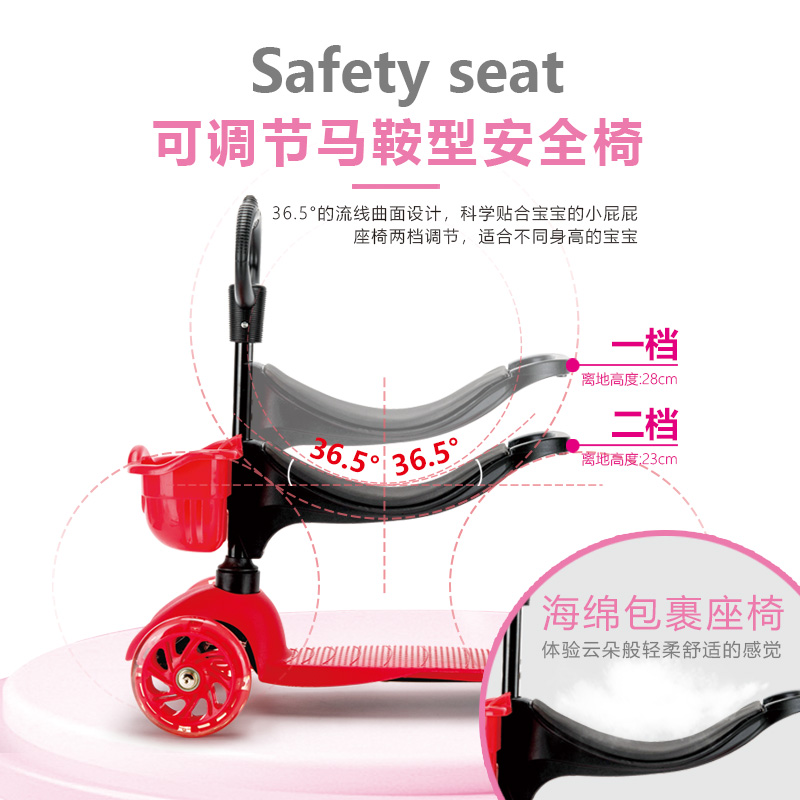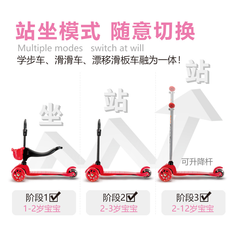 Children's scooter three-in-one can sit and ride baby slide scooter flash wheel 1-8 years old boys and girls beginners
