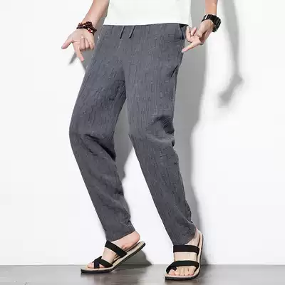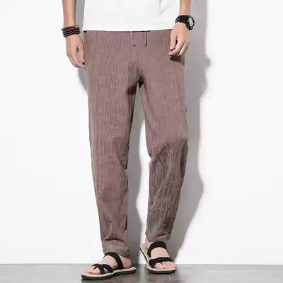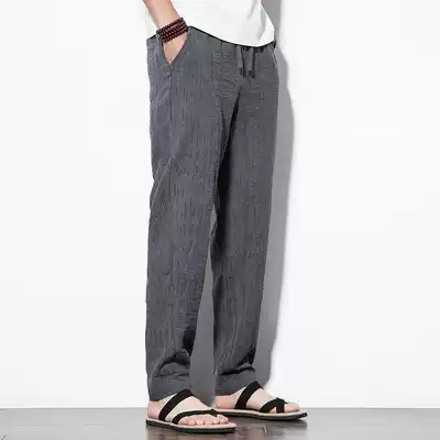 Chinese style cotton and hemp men's pants Summer thin loose straight pants Men's linen casual pants Men's large size trousers