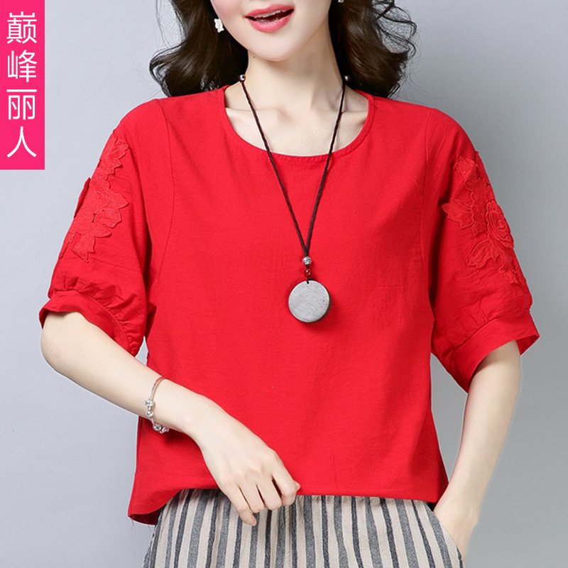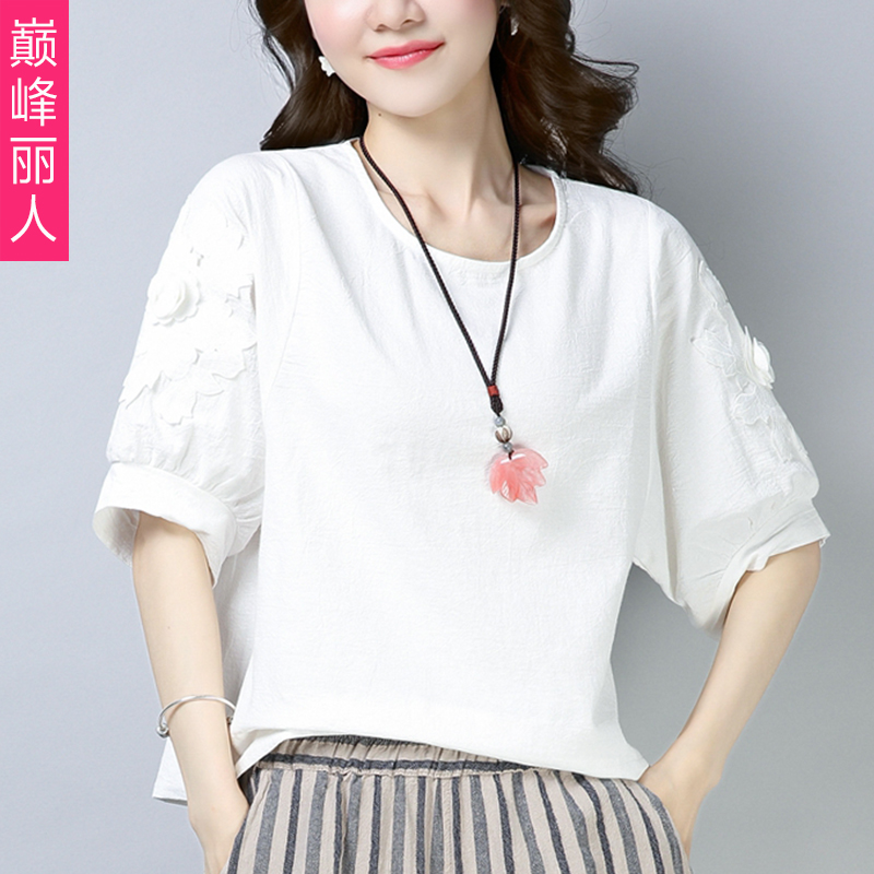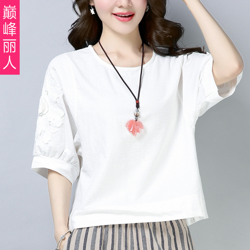 ins fashion cotton and linen T-shirt women's short-sleeved 2021 summer new solid color casual T-shirt round neck half sleeve short top