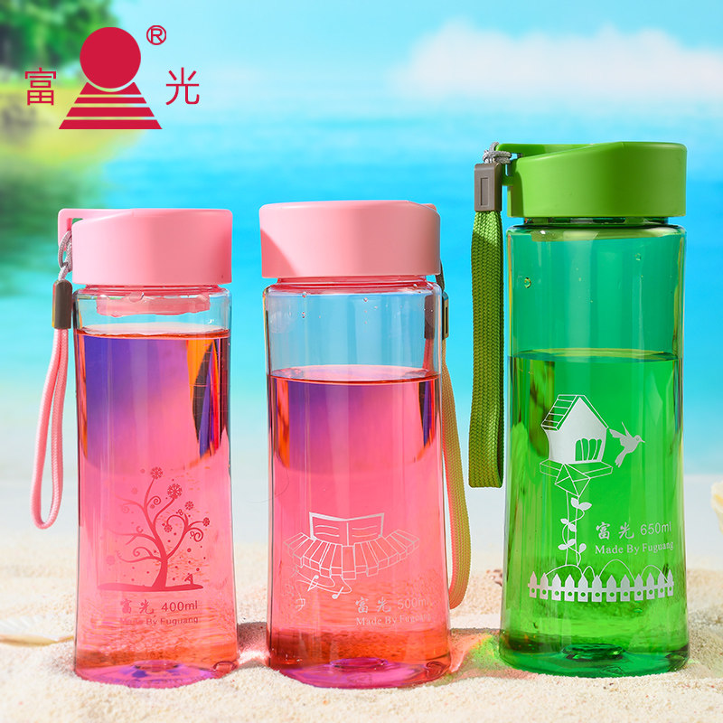 Fuguang student plastic space cup resistant to fall and convenient to go out Korean version summer 500ml girl's heart water cup simple