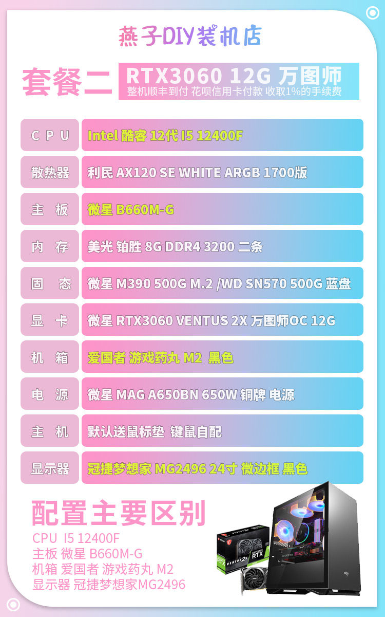 Swallow Loader Microstars RTX3060 12G Independent Display Card Game Design Computer Host Intel Cool Rui AMD