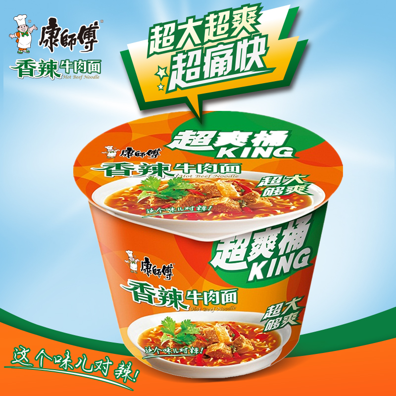 Master Kong big food bucket braised beef spicy beef old altar sauerkraut fight 12 barrels of instant noodles Instant noodles whole box of instant noodles
