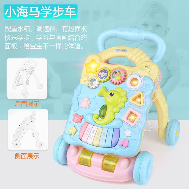 Spring baby walker baby music toy trolley children's rollover-proof walker toy