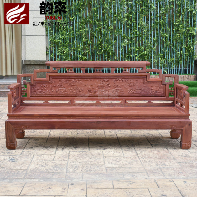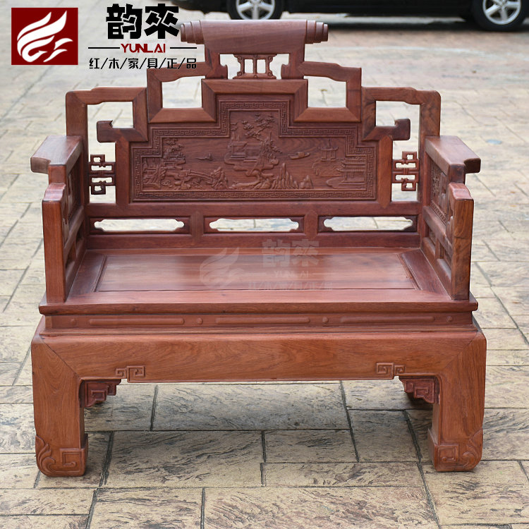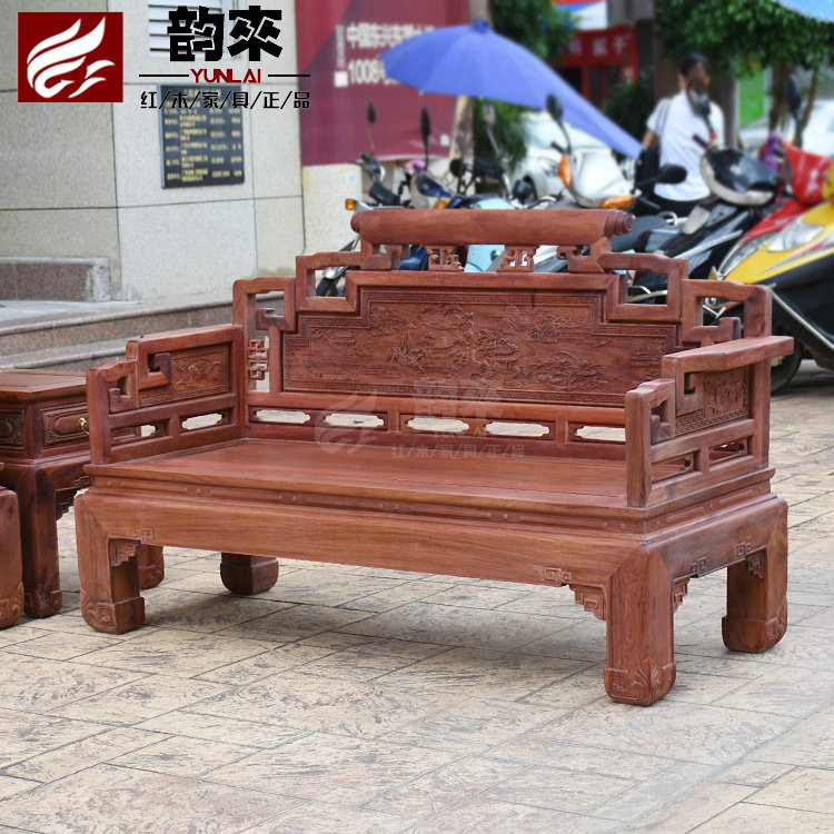 Myanmar flower pears wood carving landscape throne sofa 6 pieces 1 2 3 Composition big fruit purple sandalwood Living room Red wood furniture