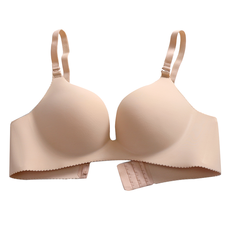 A piece of sheet-free glossy surface Soft steel ring thick cup breathable mesh Neri small chest Poly Bra Comfort side closed underwear