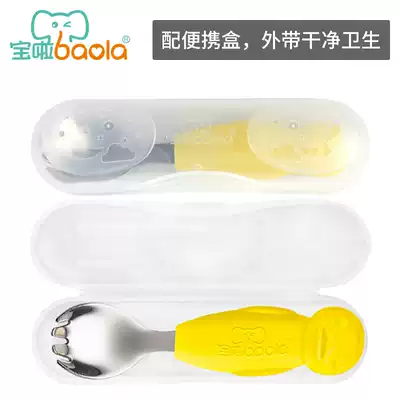 Baola children's spoon fork set Stainless steel baby rice spoon Learn to eat baby supplementary food training learning spoon