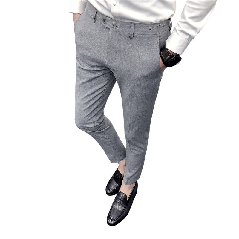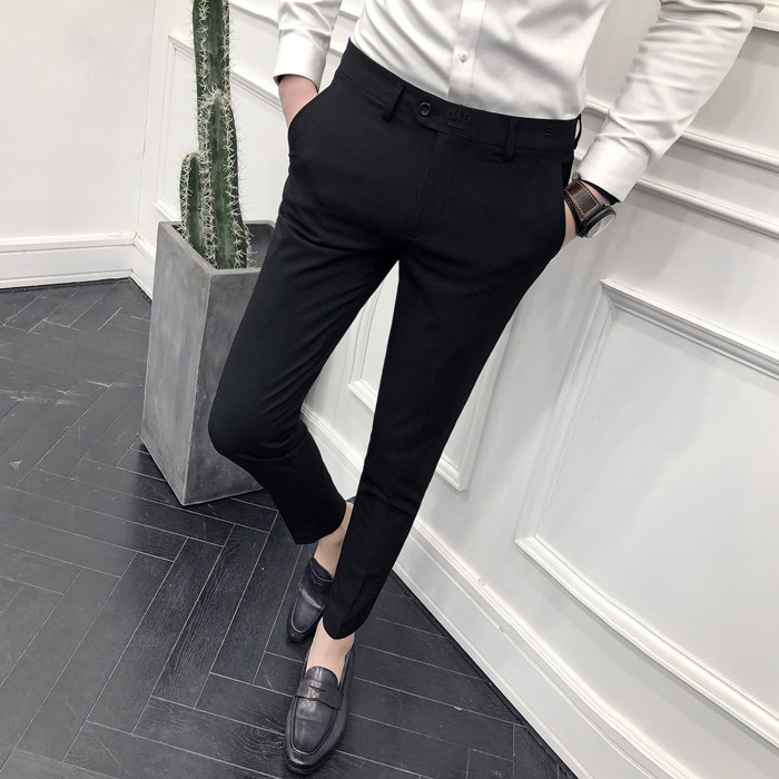 Spring and summer men's thin western pants Korean version casual Western pants hairstylist Minor Feet Casual Pants Embroidered 90% Western pants