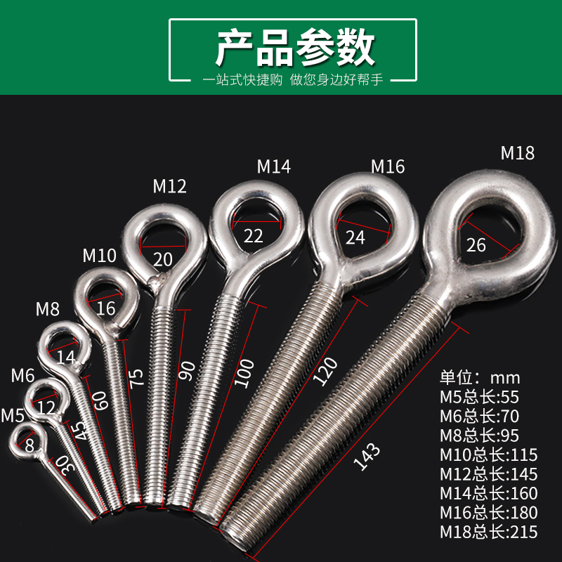 Stainless steel 304 with hook bolt Hook stainless steel hook screw flower basket hook M5M6M8M10M12M16M20