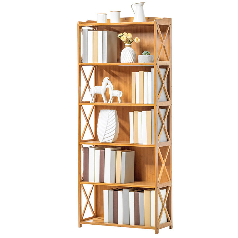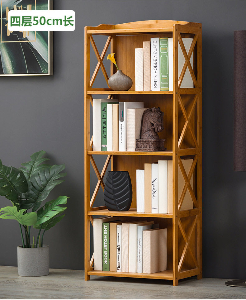 Modern simple bamboo bookshelf bookcase combination simple solid wood multi-layer floorable shelf for children and students, economical