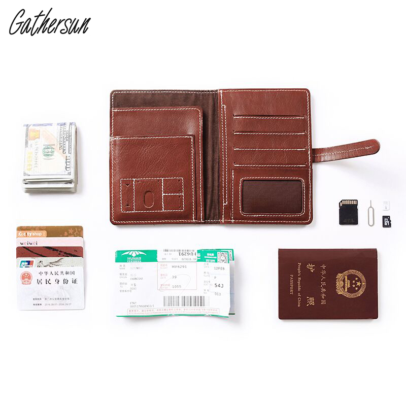 Original Passport Containing Bag Handmade Cow Leather Multifunction Business Travel Abroad Travel Documents Bag Genuine Leather Ticket Clip Custom