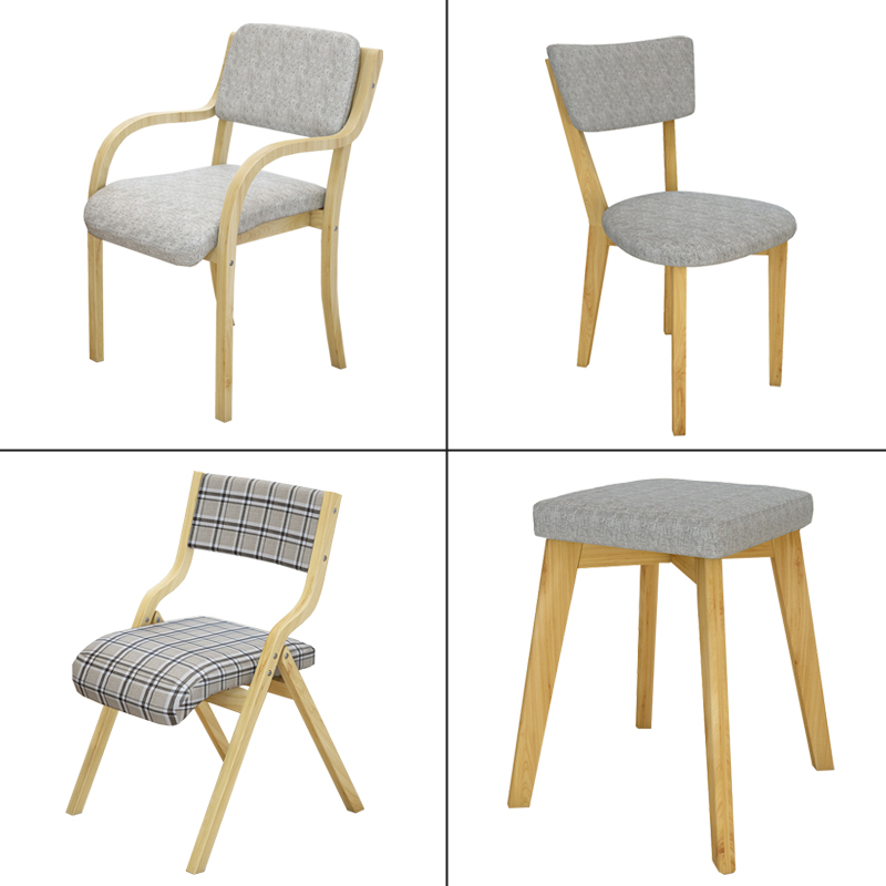 Solid Wood Chairs Backrest Home Cloth Art Armrest Casual Chair Modern Minima Folding Computer Chair Restaurant Dining Chair Stool-Taobao