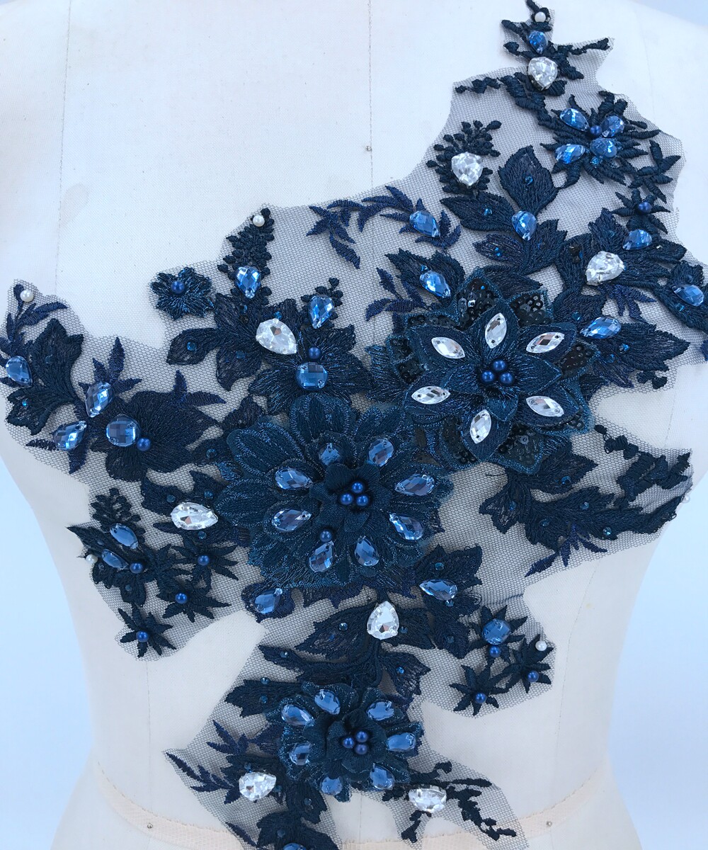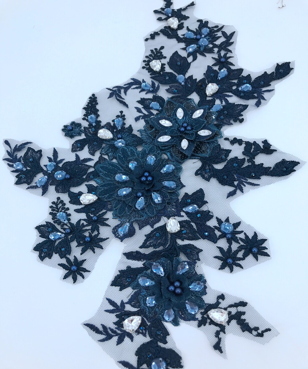 7-color rhinestone pearl decals navy blue three-dimensional lace lace flower decals DIY decorative accessories 37x24cm