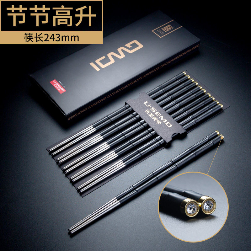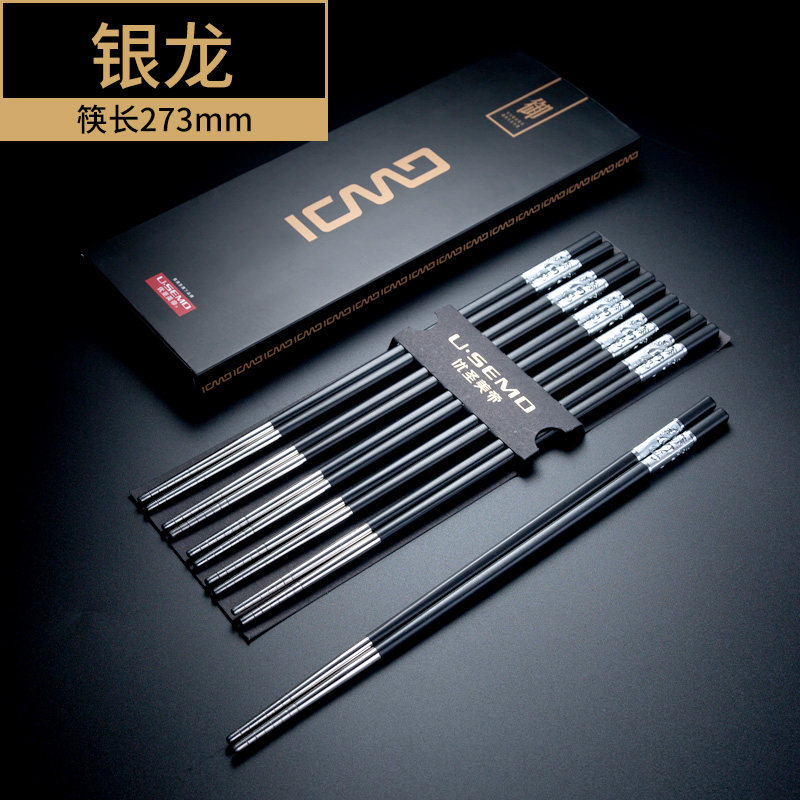 304 stainless steel chopsticks household high-end anti-slip mildew high temperature chopsticks Metal chopsticks Alloy chopsticks household