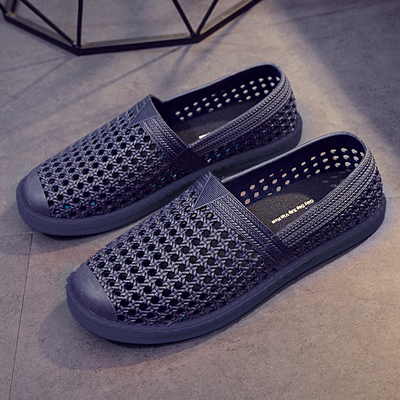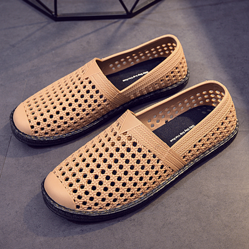 Pure hollow bare foot wear leather shoes men's Vietnam rubber hole shoes and waterproof sandals soft beach shoes and summer