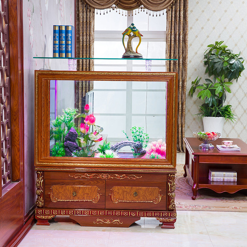 Chinese-style ecological golden dragon fish tank aquarium porch living room large screen 1 2 meters imitation mahogany grain bottom filter