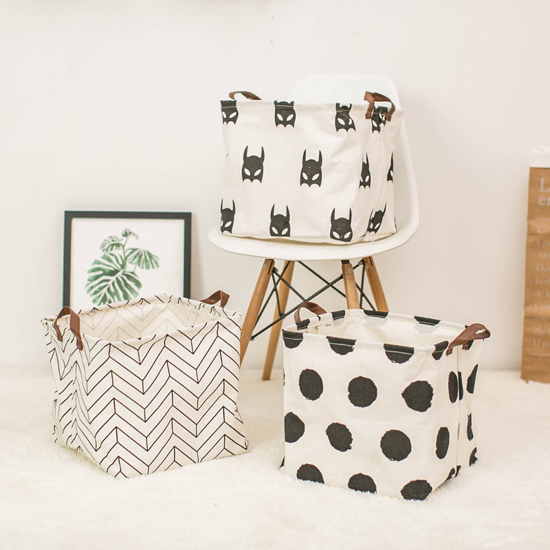 ins fabric storage waterproof dirty clothes basket cotton linen foldable dirty clothes basket dormitory toy snacks cartoon storage bucket
