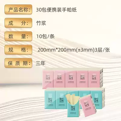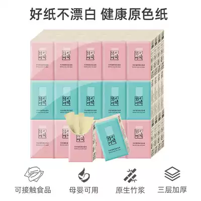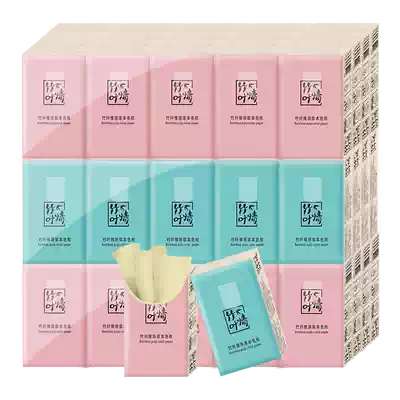 Bamboo leaf love bamboo fiber paper handkerchief natural color toilet paper portable small paper towel 3 layers thick 8 pieces 40 packs