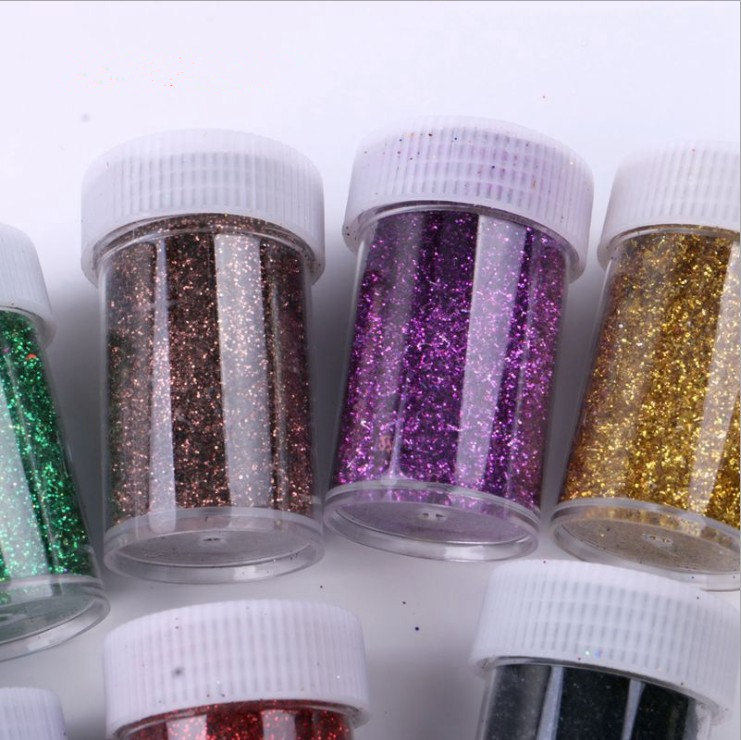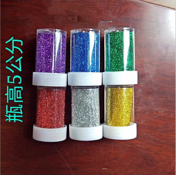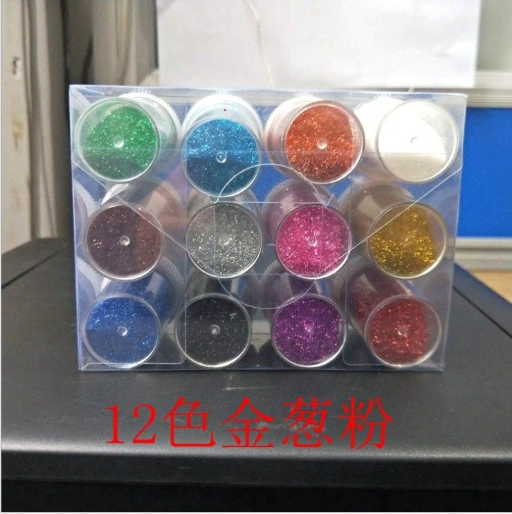 A box of 12 colors and 12 bottles (send white glue) a small bottle of gold (send white glue) a small bottle of silver (send white glue) a small bottle of gold and a small bottle of silver