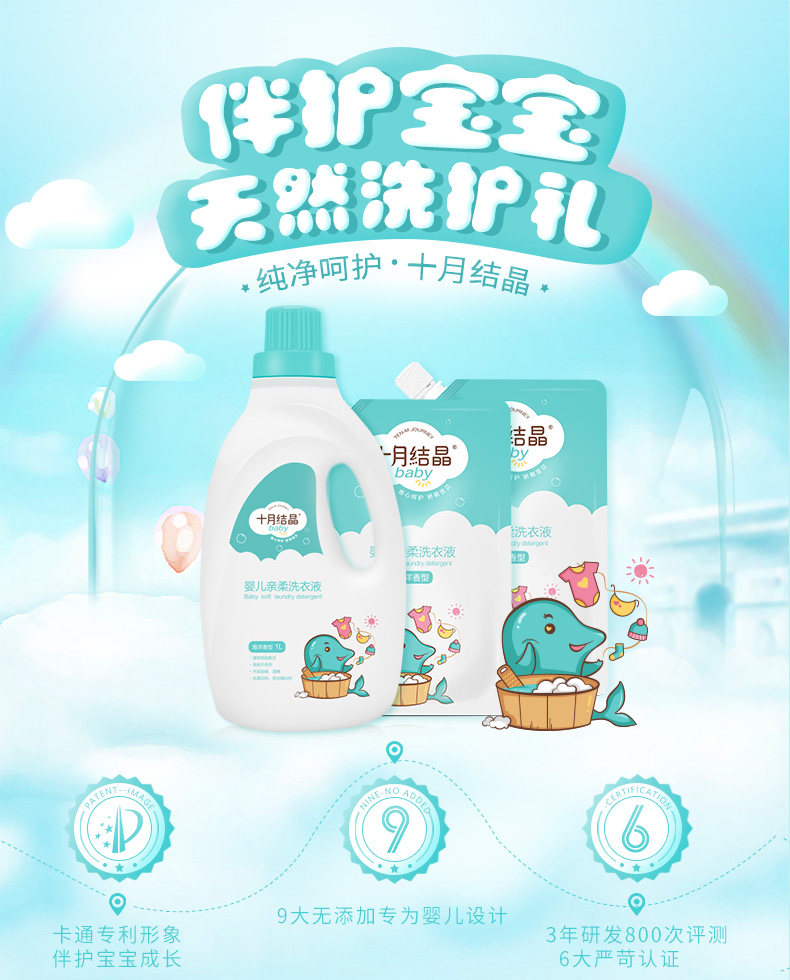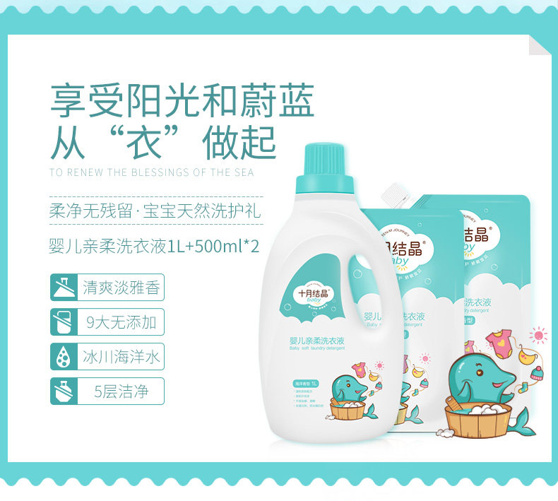 October crystallized baby laundry detergent newborn child laundry soap liquid baby special 2L combination