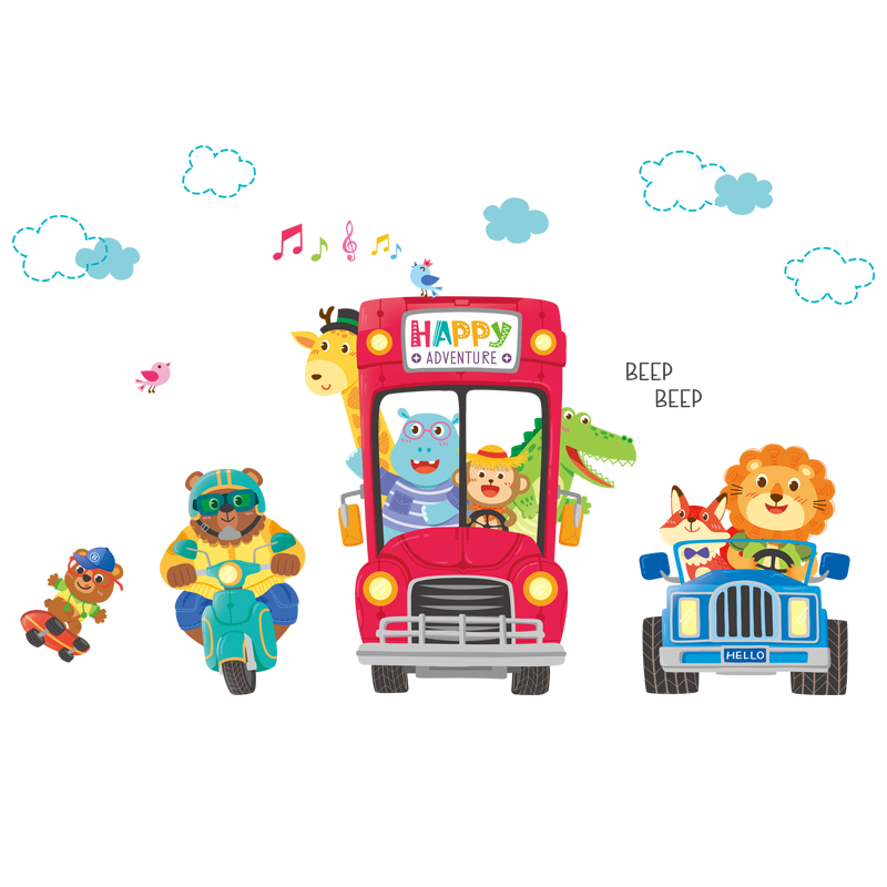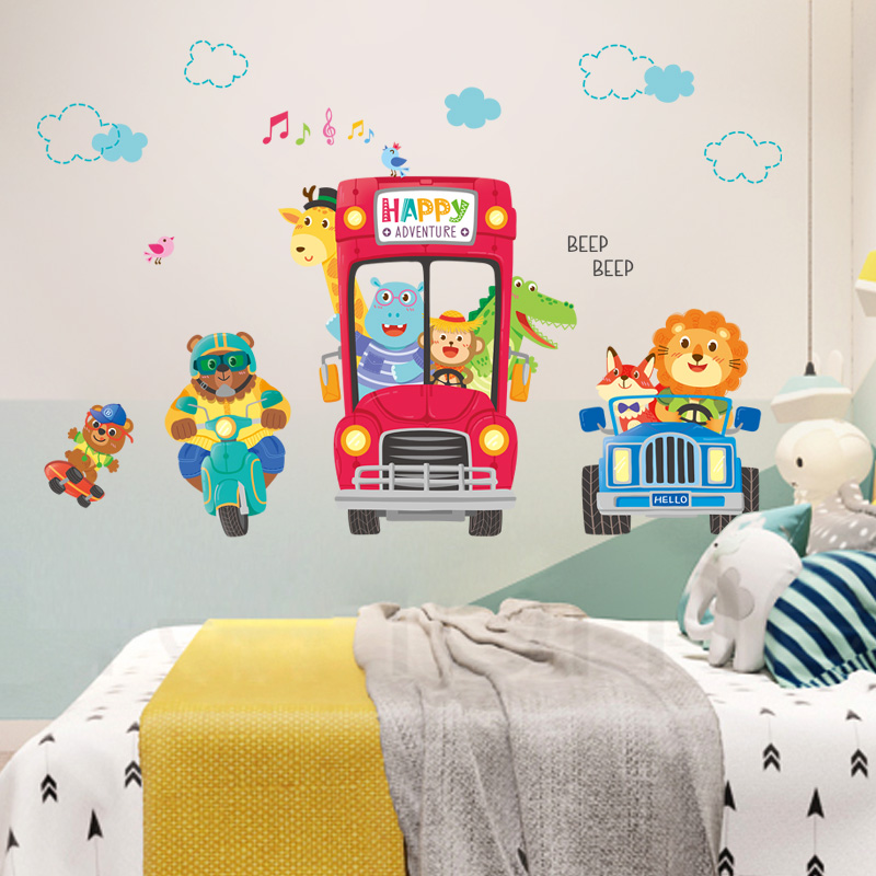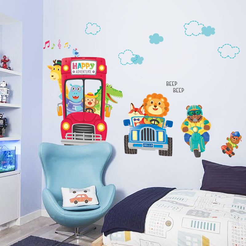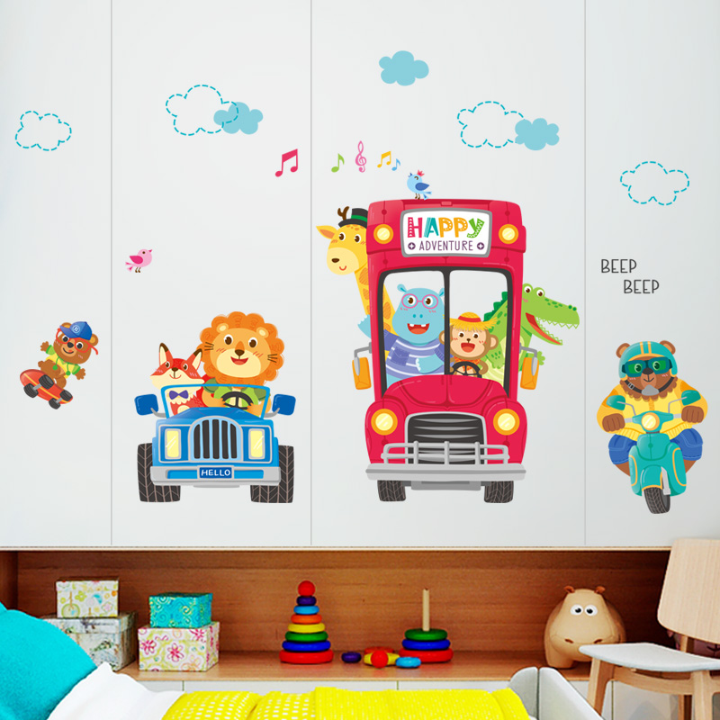 Cartoon Kids Room Boys Bedroom Decor Car Sticker Kindergarten Setup Overall Cabinet Animal Wall Sticker Self Sticker