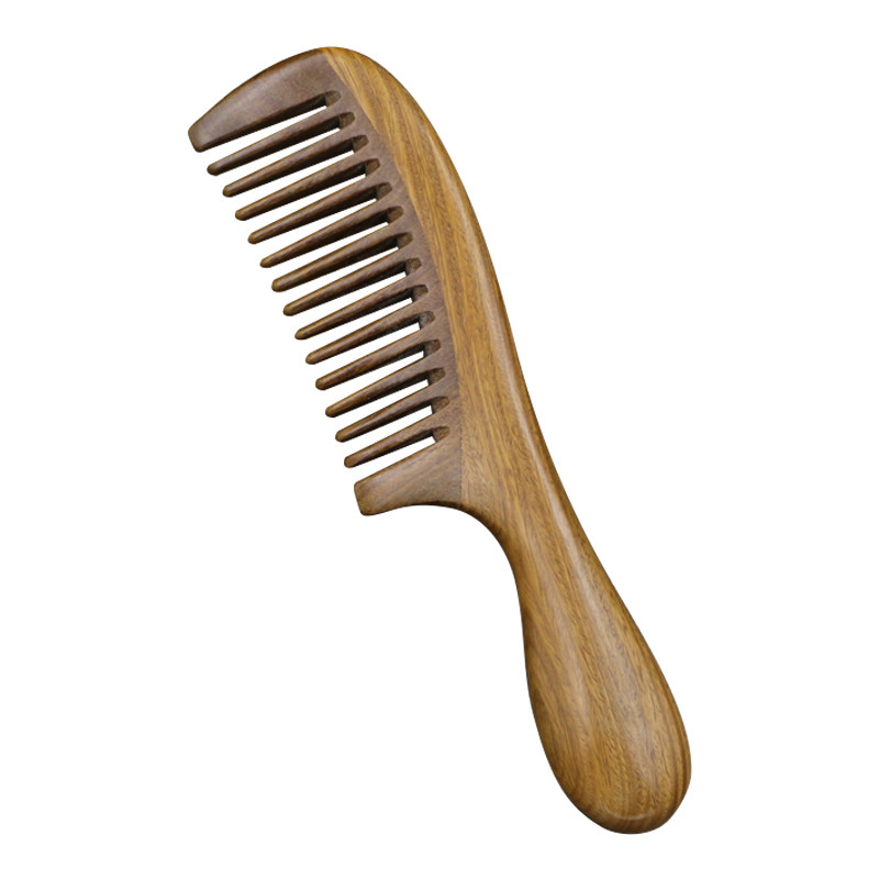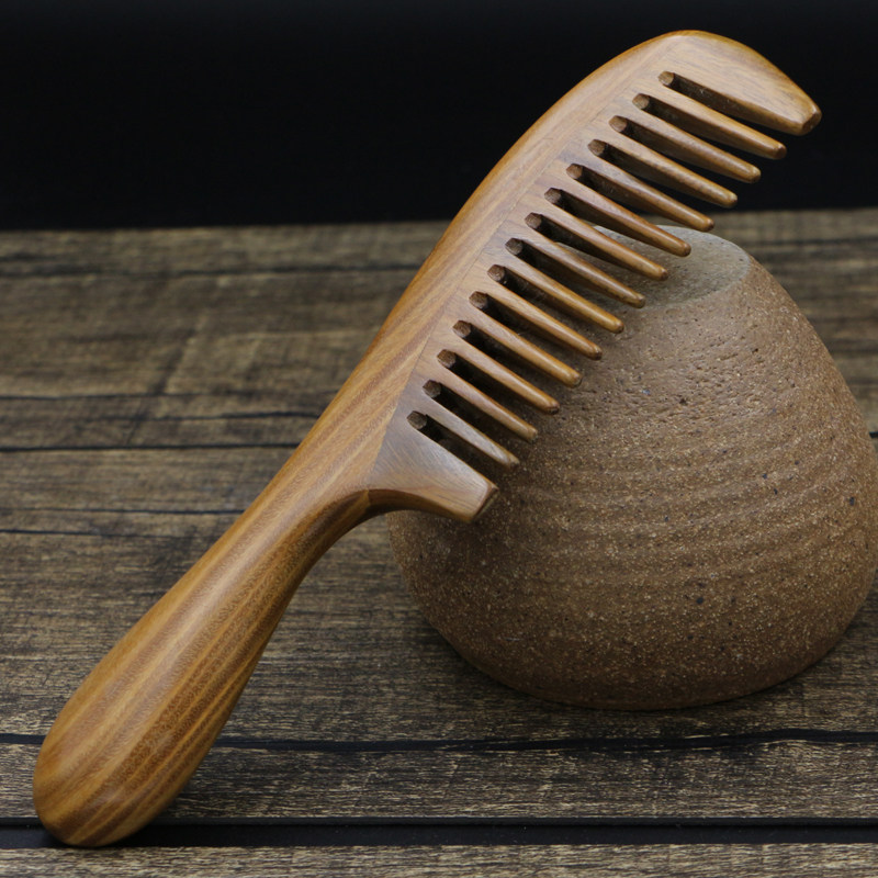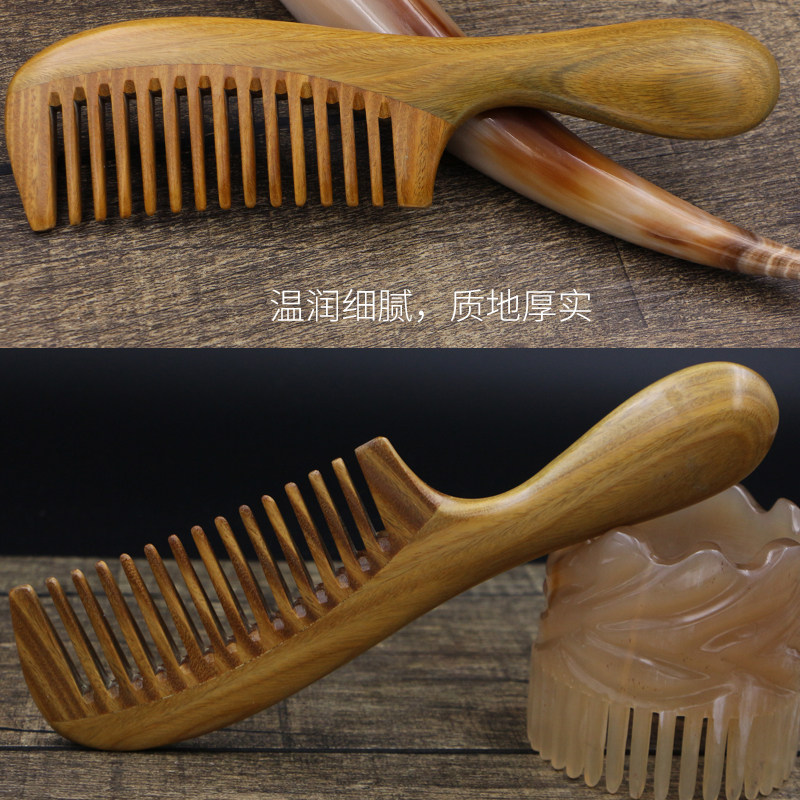 Natural green sandalwood comb wide tooth coarse tooth hair comb anti - static comb wood comb big tooth comb