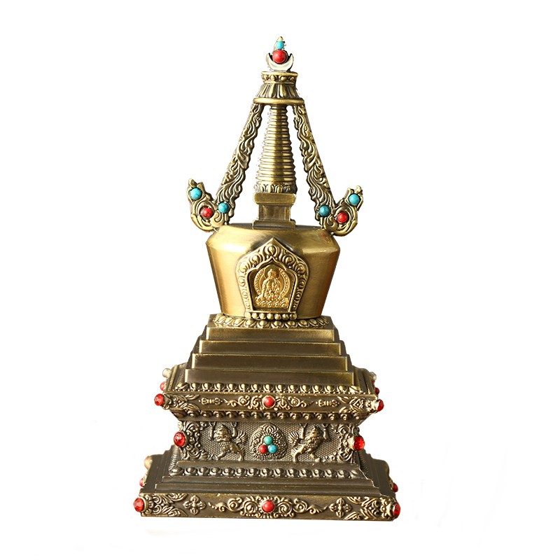 Stupa Bodhi Pagoda ornament Nepal alloy plating bronze craft loading Tibetan relics 17cm Tibetan stupa