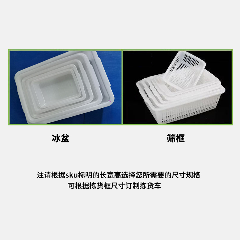 301 Ice Basin (29*20*9cm) 302 Ice Basin(34.5*24*11cm) 303 Ice Basin(41*30*13cm) 304 Ice Basin(46*33*15cm) 305 Ice Basin(52*39*16cm) 306 Ice Basin(58.5*44*17.5cm) 601 Sieve Frame(53.5*40*17.5cm) 602 Sieve Frame(50.5*38*16.5cm) 603 Sieve Frame(46*35*15cm) 604 sieve frame (42*32*14cm) 605 sieve frame (39.3*30*11cm) 607 sieve frame (30.2*22*9.2cm) 681 sieve frame (56.5*43*20cm) 682 sieve frame (50*37*17cm) 683 sieve frame (43*32*16cm) 684 sieve frame (36.5*27*14cm) 685 sieve frame (31*23*12cm) (can be customized sorter according to the pick box) No. 1 ice basin ( 23.5*16.5*6.5cm) Ice Basin No. 2 (29*20*7.5cm) Ice Basin No. 3 (35*25*8cm) Ice Basin No. 4 (41*29*9.5cm) Ice Basin No. 5 (44.5*32*11cm) Ice Basin No. 6 (50*36*13cm)