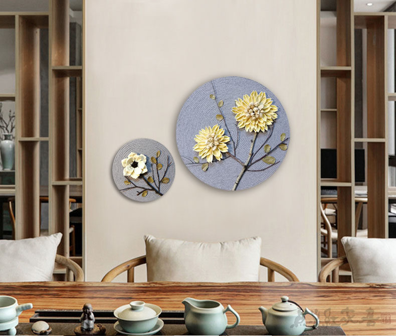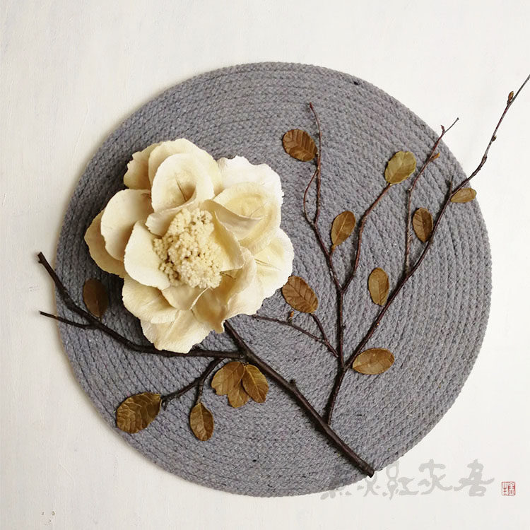 Flowers Good Moon Round Grey Ensemble ROUND HANDMADE DECORATION PAINTING SOUTHEAST ASIA HOME WALL DECORATION DRY FLORAL GUAN WALL DECORATION