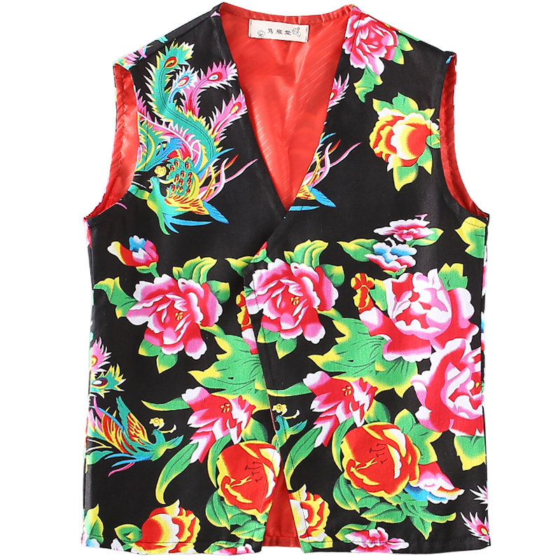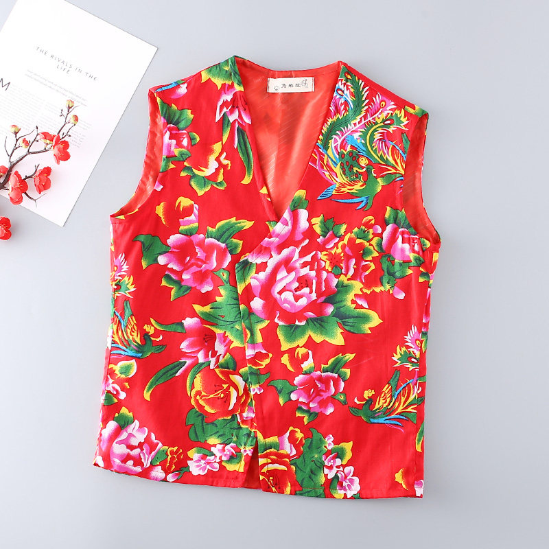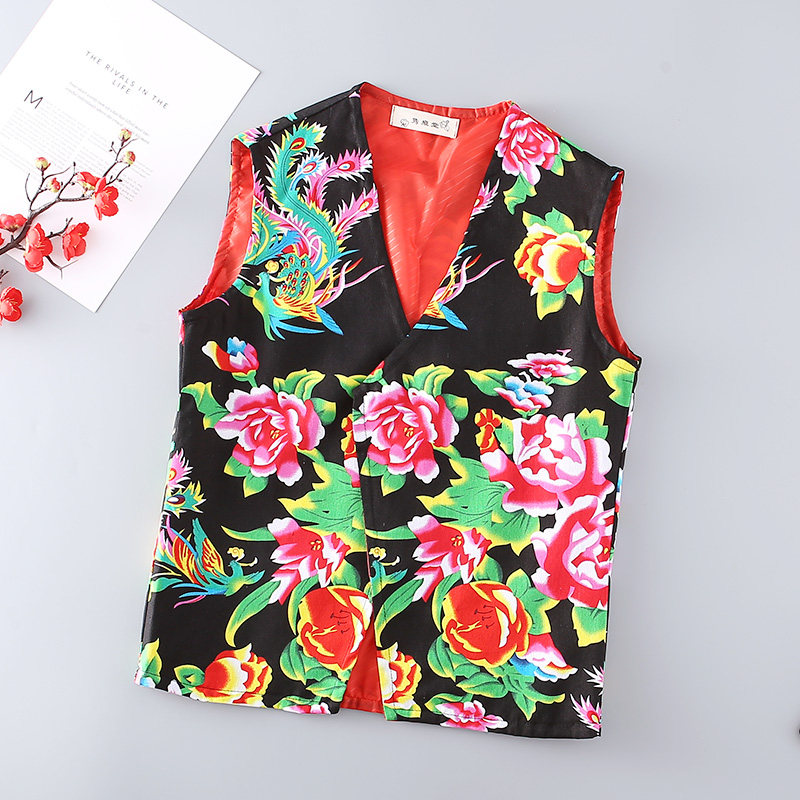New Northeast large flower cloth thin sleeveless horse clip spring and summer men's cotton slim casual outdoor mountaineering vest waistcoat