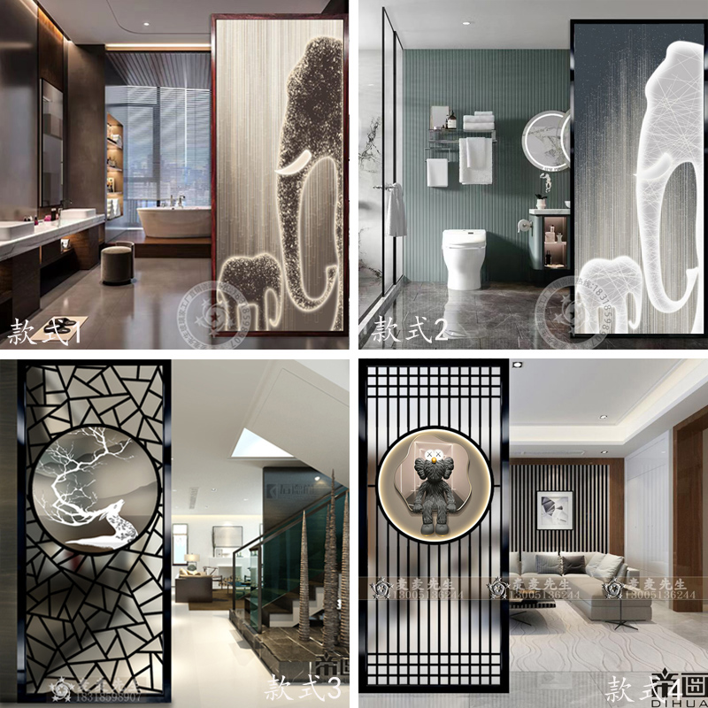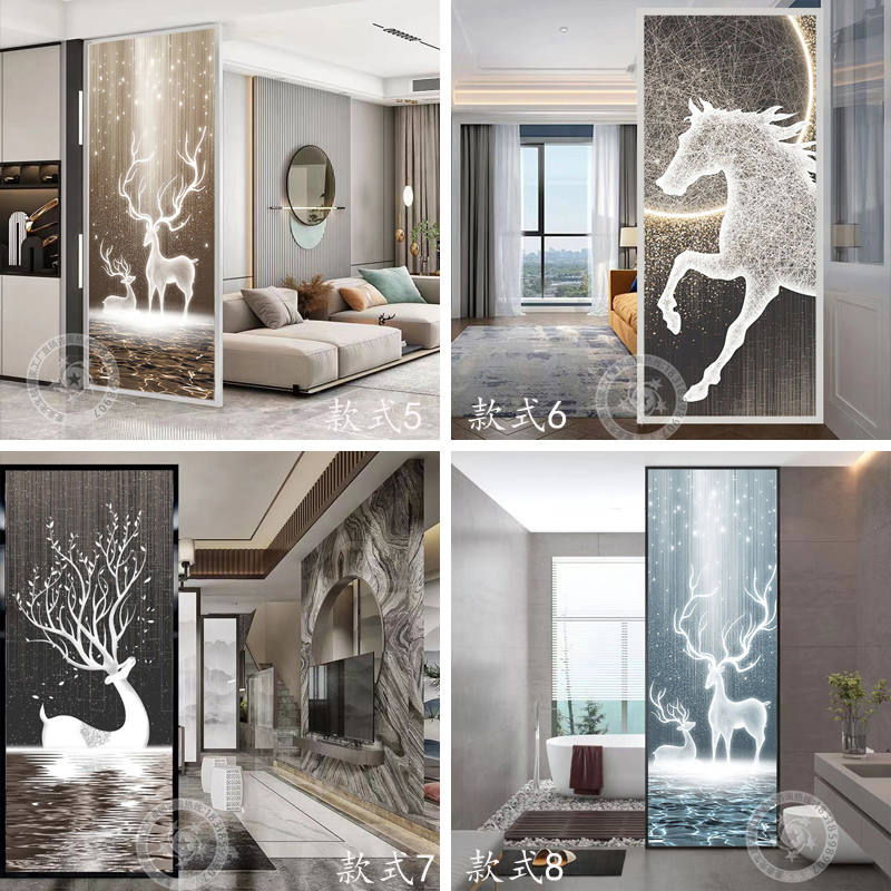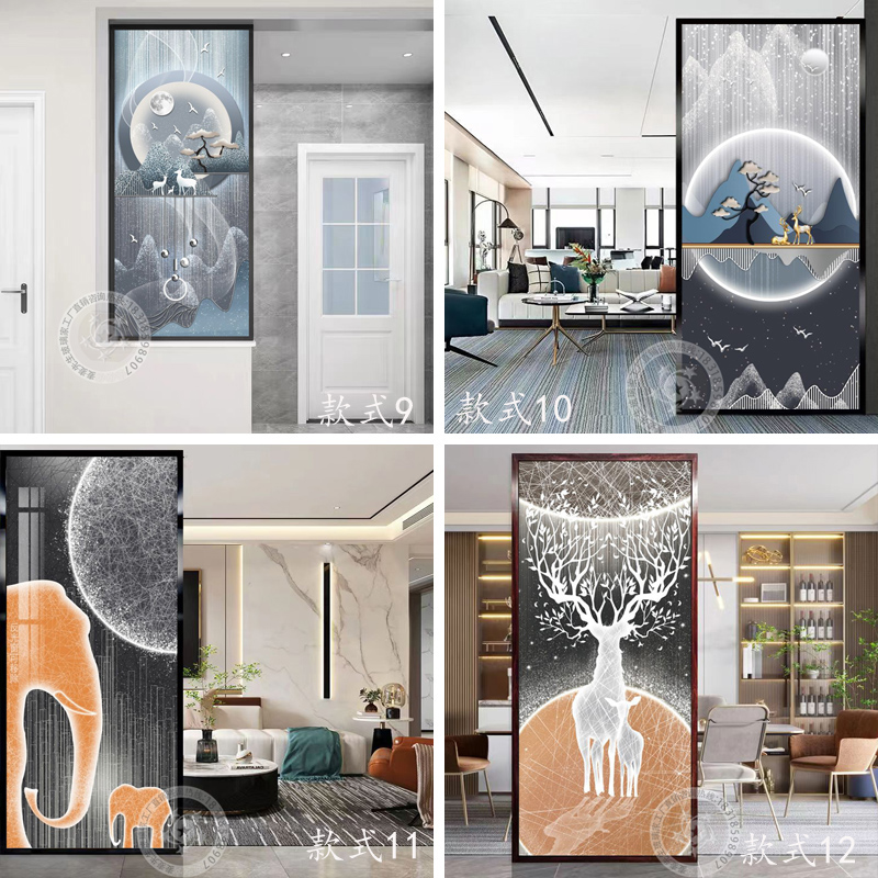 Modern screen art glass fiberglass makeup room partition dry and wet separation living room opendoor door obscure