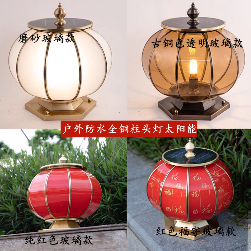 All copper column head lamp Wall Wall lamp outdoor courtyard door column lamp Villa led waterproof Chinese door column head lamp