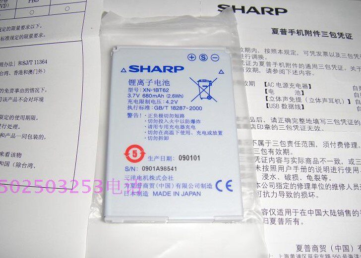 Original brand new Sharp SH6010C SH6018C SH6120CT XN-1BT62 mobile phone battery mobile phone battery