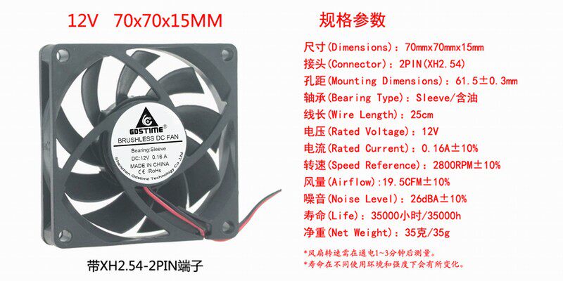 DC 12V 7CM 70MM 70X70X15 7 cm 7 cm brushless heat dissipation small fan with net