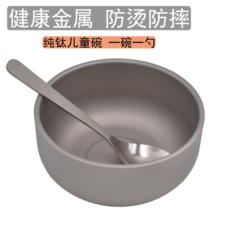 Pure titanium children's tableware titanium metal plate treasure bowl out portable double-layer anti-hot anti-drop food supplement