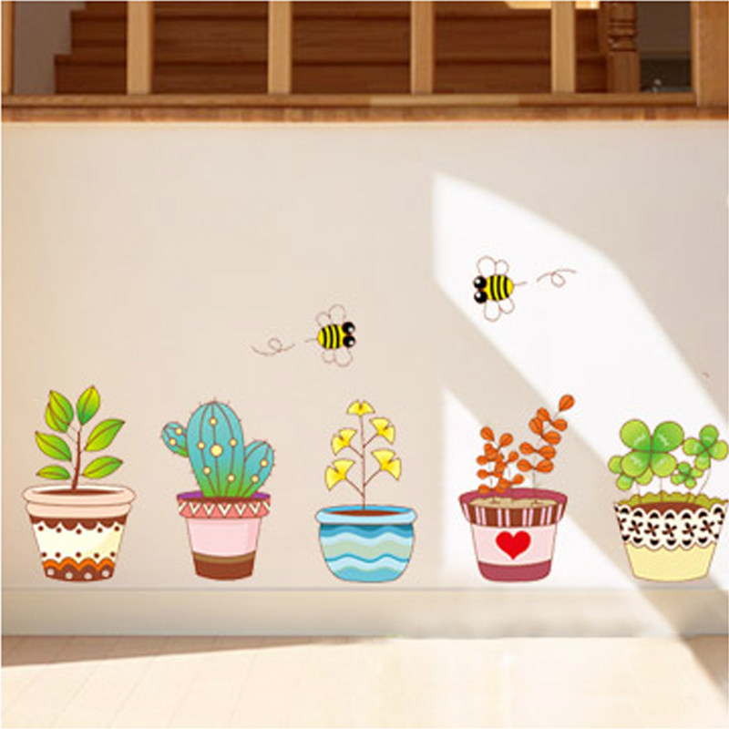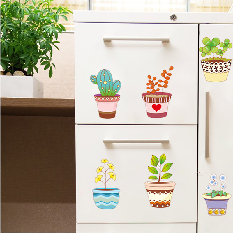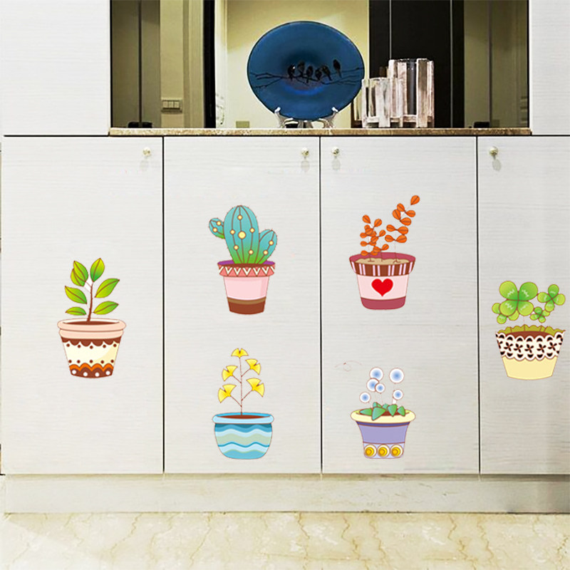 Cozy little fresh field Garden Potted Wall Stickers Kitchen Fridge Cabinet Door Sticker Hallway Xuan Guan Decoration Self-Adhesive Painting