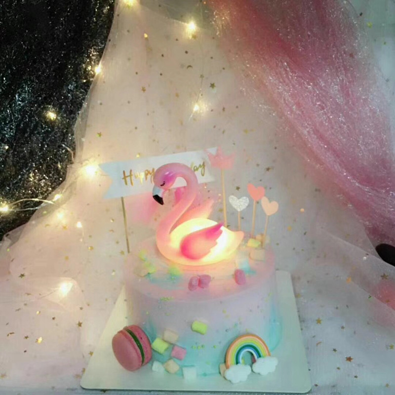 Birthday Cake Decoration Pendulum Decorated with flamingo Decorative Accessories Pendulum hollow with lamp pink sky Goose duck Deco