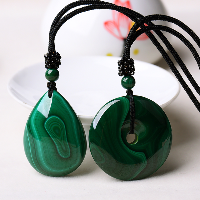 Sanyuanzhengbao malachite pendant original stone water drop vision peacock pattern male necklace female jewelry one thing one picture K