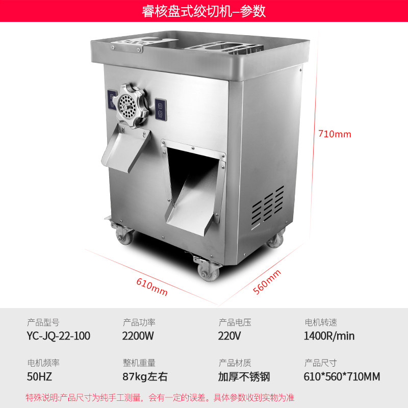Large multi-function stainless steel commercial electric meat grinder, meat slicer, shredder, minced meat, vegetable enema, meat blender