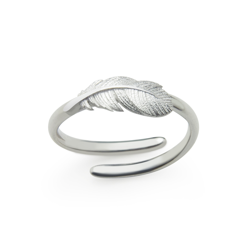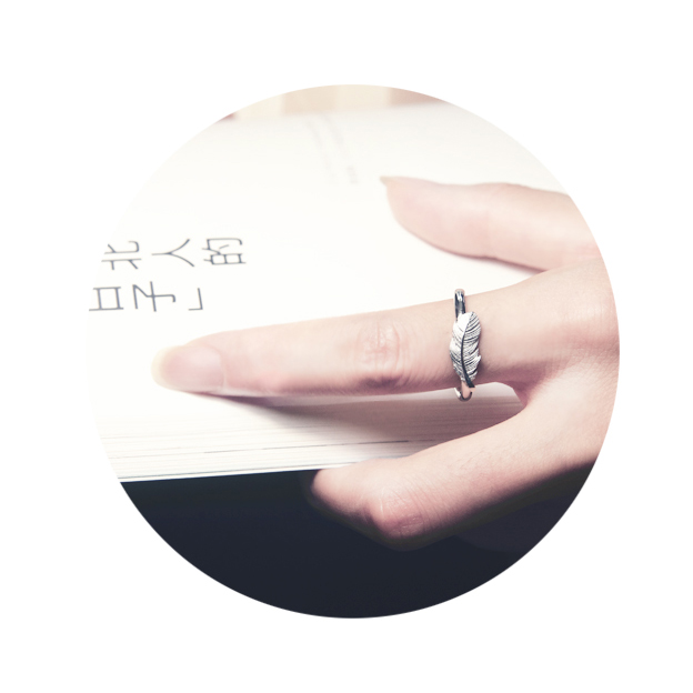 Find original design feather ring S925 pure silver opening ring personality textural temperament lettering men and women to the ring