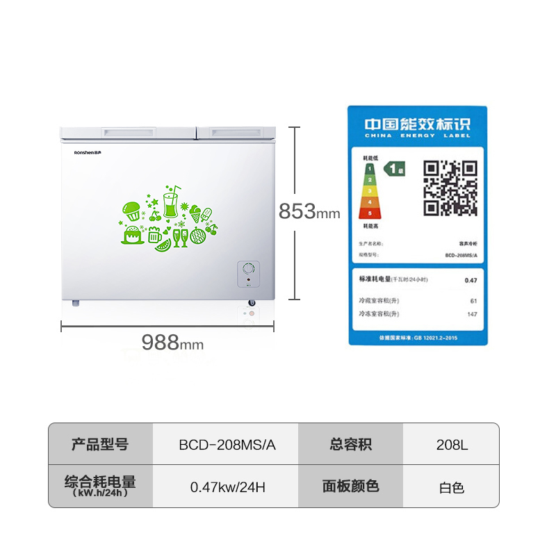 Rongsheng 208-litre freezer double-temperature small freezer refrigerated and frozen household commercial dual-purpose horizontal mini refrigerator energy saving