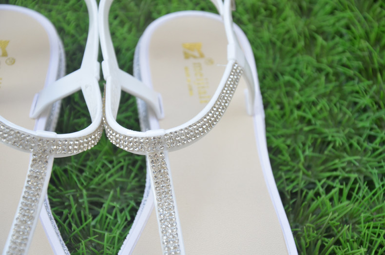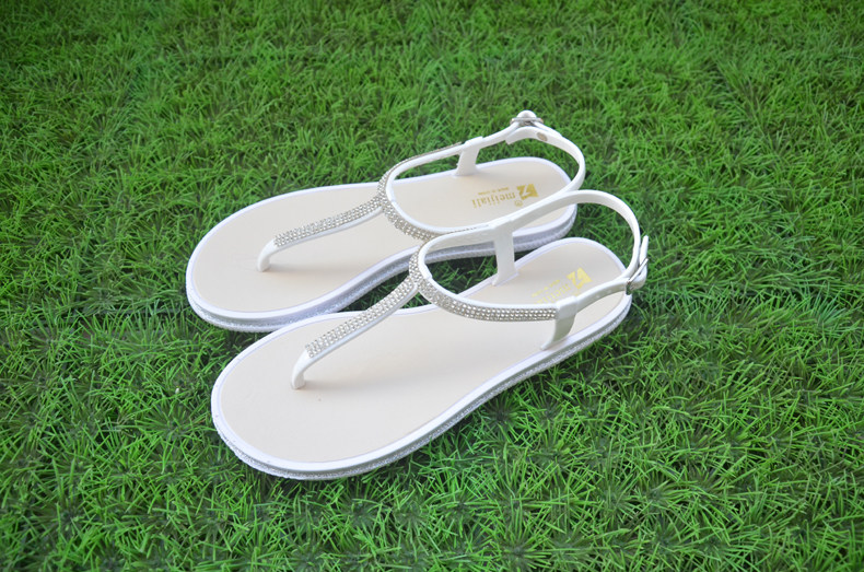 European and American fashion rhinestone women's summer simple and lightweight T-shaped flat herringbone sandals and slippers shoes casual flip-flops