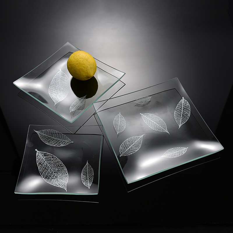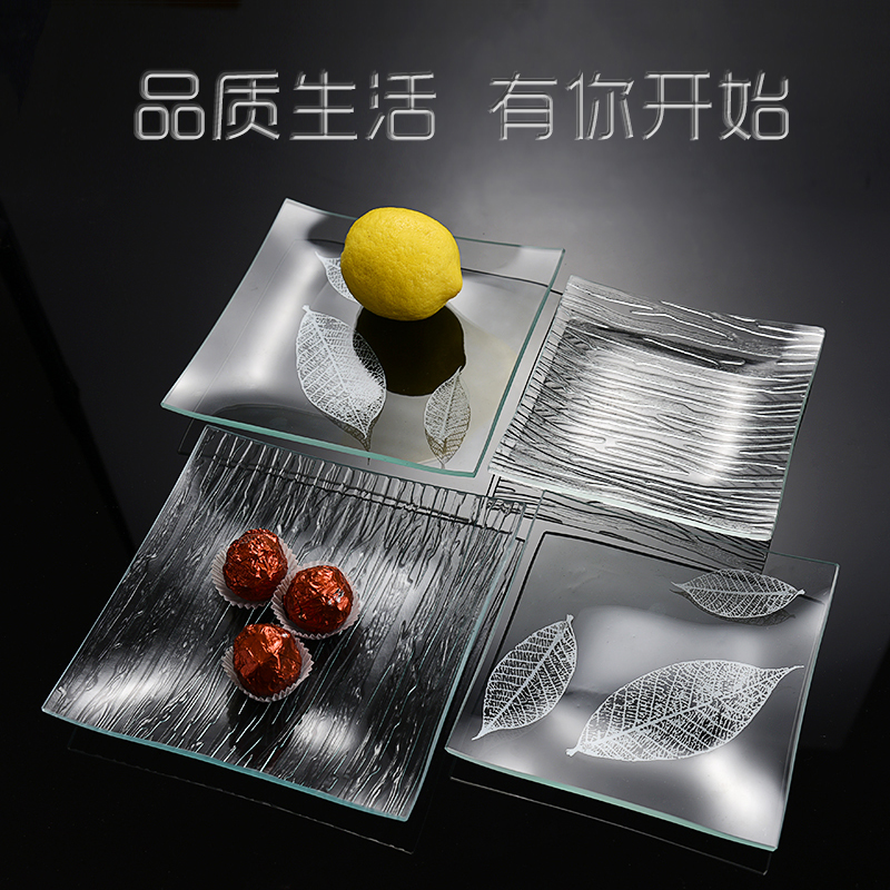 Creative Transparent Toughened Fruit Plate Eu Style Fashion Snack Dish Snack Parquet Large Number of tea tray Microwave Oven