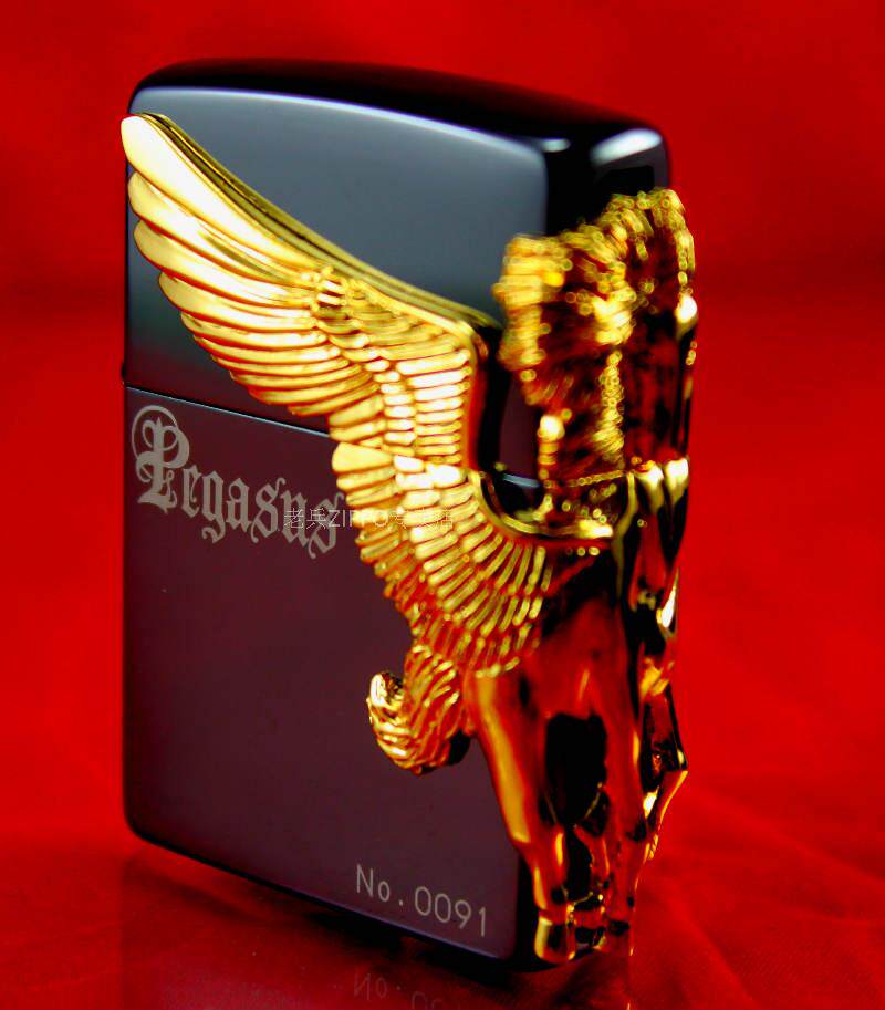 ZIPPO Lighter Limited Edition Gilded Black Ice Three Sides Relief Side Sky Horse Flying Horse Sky Horse