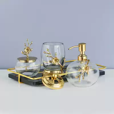 Harvest cottage India imported golden plum blossom glass bathroom toiletries ornaments Bath bottle toothbrush holder jewelry