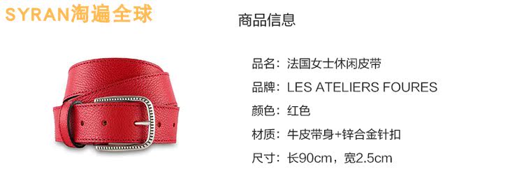France imported LES ATELIERS FOURES ladies first layer leather belt belt casual simple red