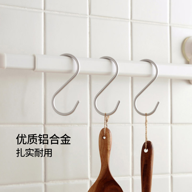 (Hook series)Japanese-style S-type aluminum kitchen hanging hook cap bathroom storage clip adhesive hook without trace