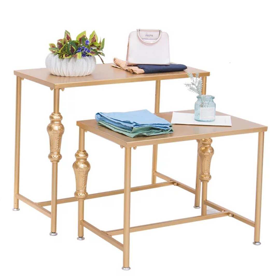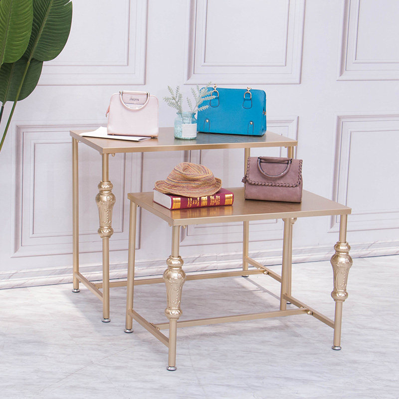 Children's clothing store high and low flow water table rose gold window display table clothing store shelf in the island table bag shoe rack